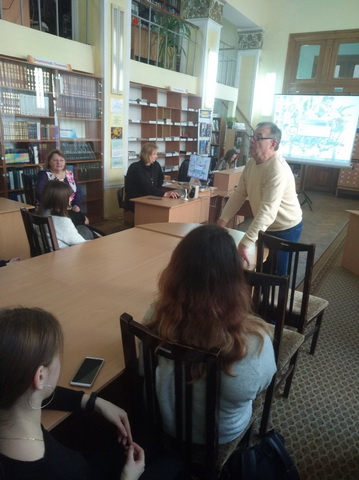 20 березня 2019 року на базі бібліотеки імені Є. Плужника відбулася презентація книги Олександра Балабка «Київ, Іринінська. Лифарям…» - повість за листами митця. Письменник, журналіст, лауреат премії імені Івана Франка в галузі інформаційної діяльності Олександр Балабко презентував розповідь про постать видатного танцівника і хореографа ХХ століття киянина Сергія Лифаря, який майже тридцять років очолював балет Гранд Опера у Парижі. Гімназисти подивилися документальний фільм про життя С. Лифаря та почули творчу сповідь автора про особливості створення книги про Великого українця. Переможниця вікторини Аліса Соколовська отримала у подарунок книгу з автографом автора – Олександра Балабка.