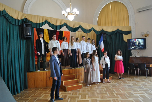 В рамках Тижня іноземних мов та з нагоди відзначення Року французької мови в Україні 16 травня 2019 року гімназистами 9-х класів було презентовано авторський проект учня 9-Б класу – Радченка Івана «Свобода! Рівність!Братерство!», присвячений Великій французькій революції.