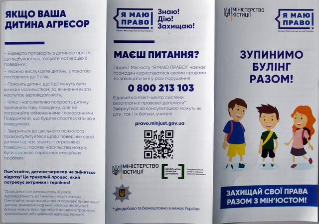 Головним територіальним управлінням юстиції у місті Києві був проведений третій правопросвітницький захід «Стоп булінг» в рамках реалізації загальнонаціонального правопросвітницького проекту «Я МАЮ ПРАВО».