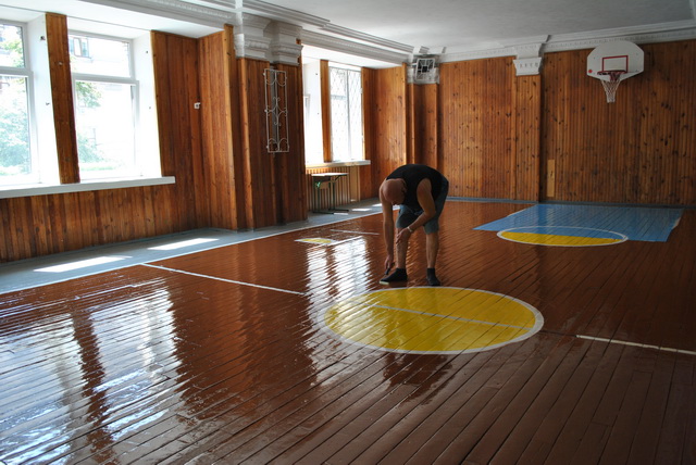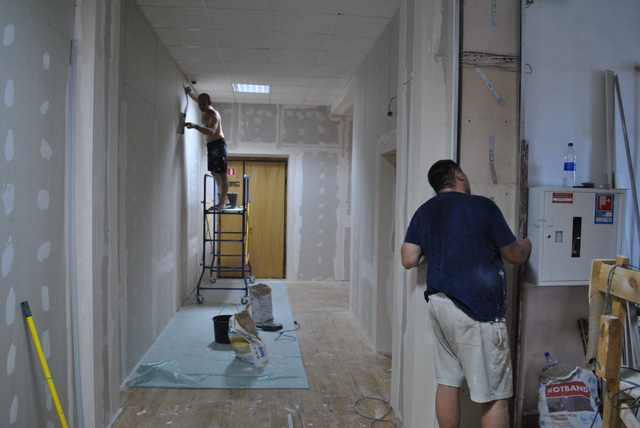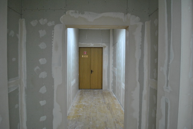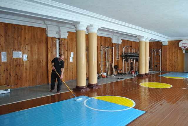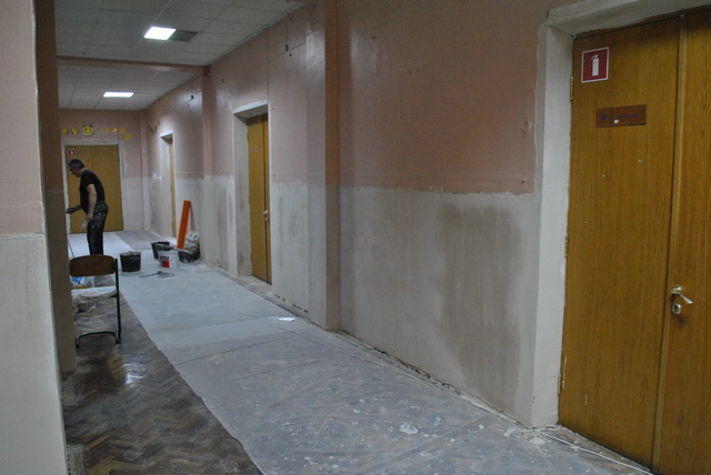 Повністю завершено зняття пожежно-небезпечного покриття біля центральних сходів гімназії та заміни його на сучасне естетичне оформлення стін.