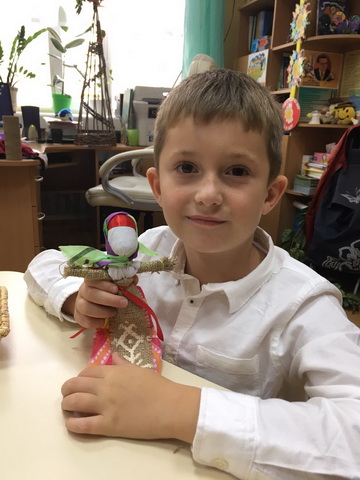 Як же подобалося малечi у своįй творчостi доторкнутися до минулого! Власноруч творити маленький оберiг, який уособлює щастя, добробут, несе мир i злагоду в родину. Природнi матерiали, яскравi елементи стародавнього декору дiти з радiстю i насолодою втiлювали у своįх творчих задумках.