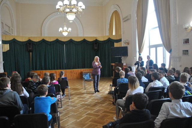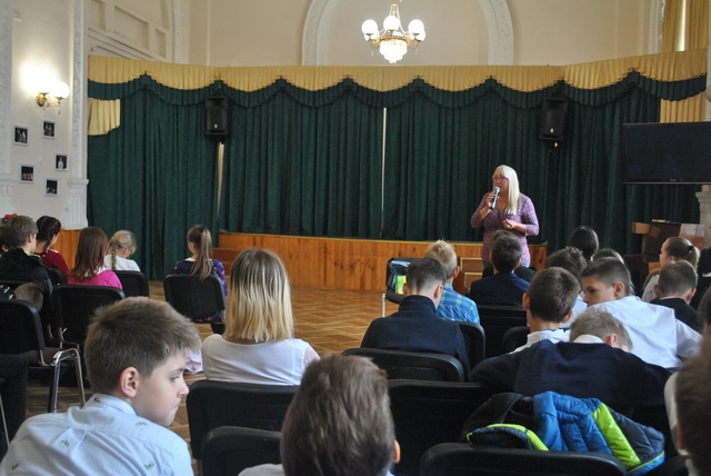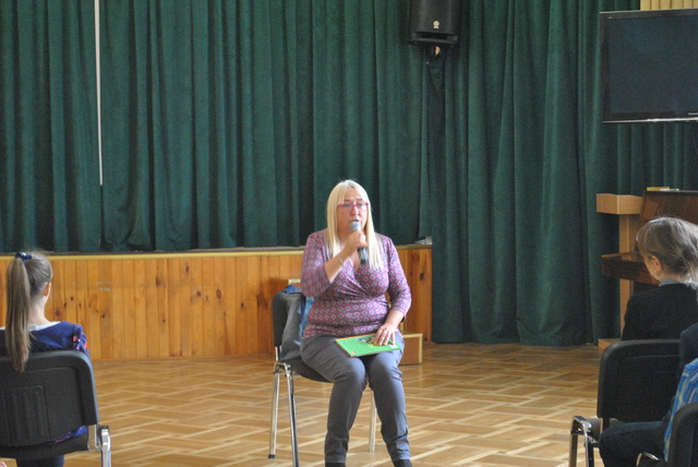 Гімназисти 5-8 класів, які вивчають польську мову, мали честь зустрітися з "Послом Польської Мови - 2019", письменницею та мовознавцем Агнєшкою Фрончек та з керівником науково-освітнього відділу Республіки Польща Евою Матушек-Загатою. Під час зустрічі пані Агнєшка познайомила присутніх зі своїми віршами, поділилася секретами польської мови. Звичайно ж не обійшлося й без подарунків: найактивніші учасники отримали від письменниці збірники віршів з автографом.