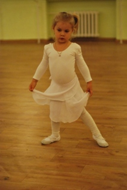 Після першого виступу маленька балерина ще з більшим задоволенням ходила до балетного класу. Заняття проходять по 1,5 годи 4 рази на тиждень (2011-2012). Кожен маленький рух випрацьовується роками.