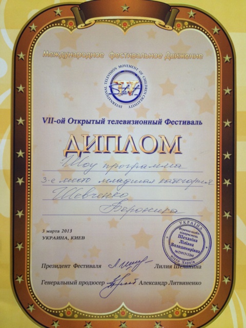В березні 2013 р. приймала участь в VII відкритому телевізійному Міжнародному Фестивалі TV Start, де посіла третє місце. А також записала свій перший диск.