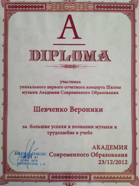 Навчається в музичній школі №3 ім. В.Косенка по класу фортепіано, приймає активну участь в концертах.