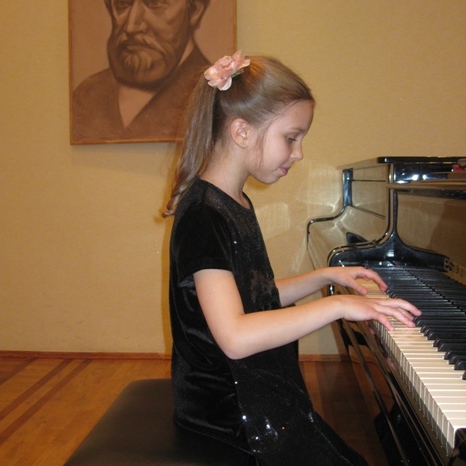 Почала займатись музикою з чотирьох років. Зараз навчається у 5 класі ДМШ №26. Клас викладача Мельникової Тетяни Володимирівни.