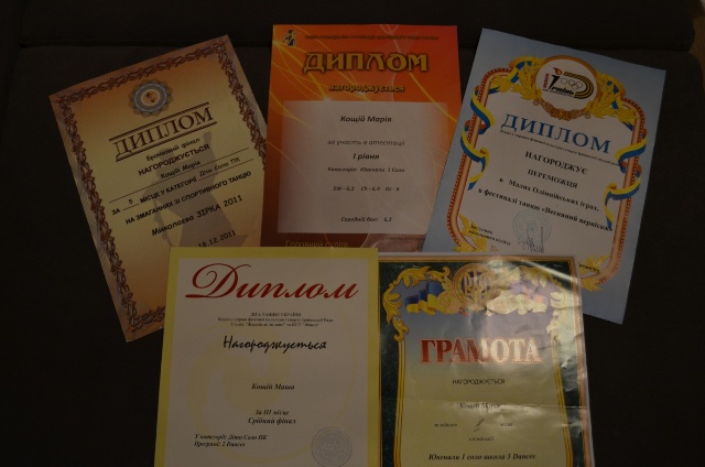 Грудень 2011року зайняла 2 місце у категорії Діти Соло ПК на змаганнях зі спортивного танцю.