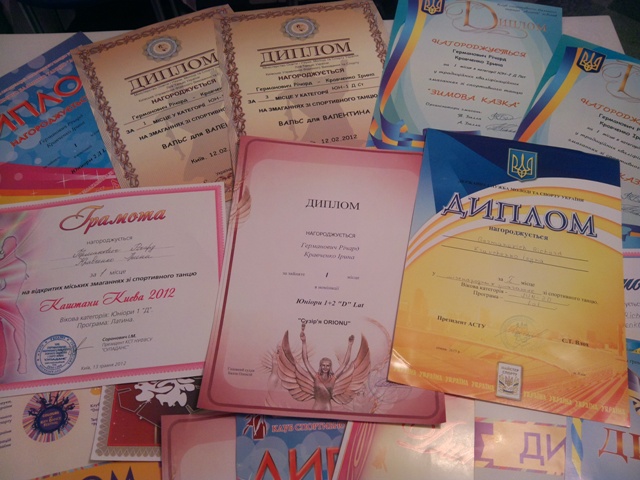 Отримав 1 місце в номінації Кубок Президента в Міжнародних змаганнях зі спортивних танців «Кубок Східної Європи-2013».