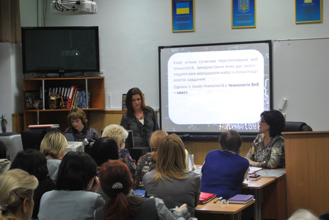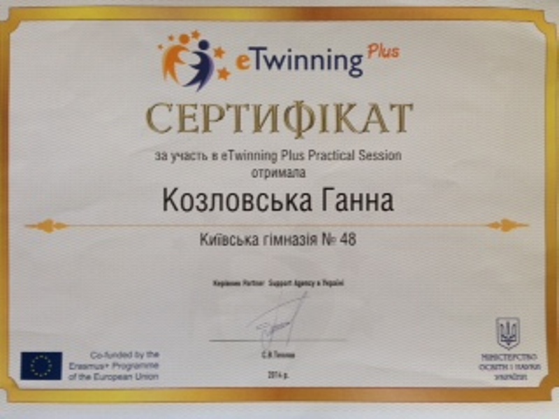 15 грудня 2014 року в гімназії № 48 був проведений семінар за темою: «Застосування WEB-технологій у навчальній діяльності». Теоретичним та практичним матеріалом щодо технології веб-квест поділилися заступник директора з навчально-виховної роботи Адамська О.О., вчитель математики та інформатики Власова І.О. Вчитель англійської мови Козловська Г.П. розповіла про системну роботу на базі платформи eTwinning, ознайомила з методикою роботи у Twinspace, ілюструючи усе прикладами проектів. Презентувала веб-квест «Великі міста Австралії та цікаві факти про країну» під час викладання спецкурсу «Країнознавство», де для отримання певного завдання учні мали прочитати QR коди за допомогою своїх гаджетів та виконати його, користуючись вказівками вчителя. Учні були заінтриговані новим методом пошуку інформації та використанням itools, про які вчитель-ітвіннер Козловська дізналась під час eTwinning Plus Practical Session 2014.