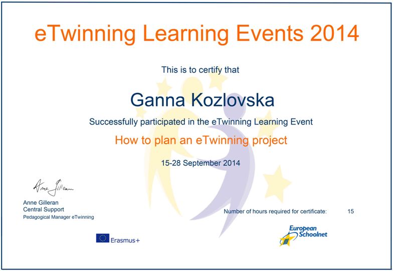 17 березня 2015 року вчитель-ітвіннер Козловська Г.П. взяла участь в англомовному онлайн семінарі «Освіта та дипломатія: дві сторони однієї медалі», у якому брало участь понад 180 вчителів з різних країн.