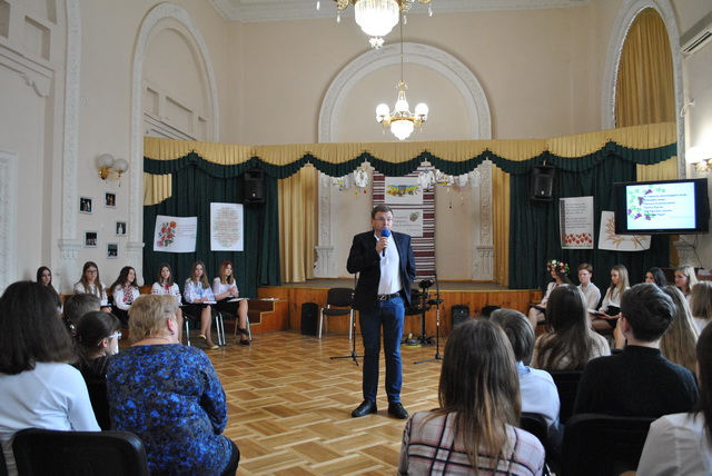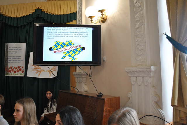 Українська поетеса Ліна Костенко влучно відмітила: «Нації вмирають не від інфаркту, спочатку їм відбирає мову». Мова бідніє від того, що нею не користуються на державному рівні й не спілкуються у побуті. Тому, аби примножити й зберегти рідну мову, нею треба спілкуватися, починаючи від колискових і завершувати виступами з високих трибун. Нею варто думати та мріяти, дивуватися і любити. Саме це продемонстрували учні 2-8-х класів в презентаційному проєкті «Нас єднає мова» та Народний артист України, батько учениці 8-Б класу Надії Маги й наш гарний друг – Петро Мага.