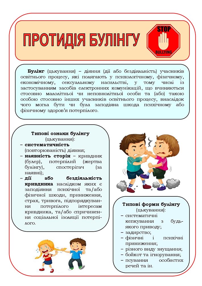 Інформативно-просвітницька діяльність серед учасників освітнього процесу щодо булінгу (цькування) та нетерпимого ставлення до насильницької моделі поведінки у міжособистісних стосунках