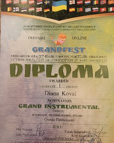 Особливо теплі вітання Діаночці, яка навіть під час карантину здобула два перших і Гран прі на Міжнародному фестивалі-конкурсі «Grandfest online».