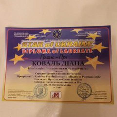- Коваль Діану, скрипка, ученицю 5- Б класу гімназії №48.
