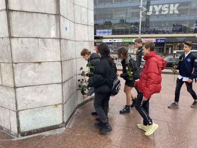 Напередодні 77-ої річниці визволення Києва від фашистських загарбників 05 листопада 2020 року під час проведення уроку-пам’яті рада самоврядування гімназії №48 на чолі з магістром гімназії – Любчичем Олександром та соціальним педагогом Лашковою Г.С. здійснили покладання квітів до Обеліску «Місто-герой Київ».