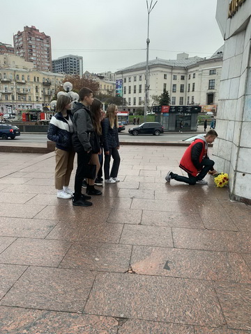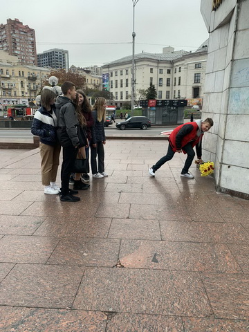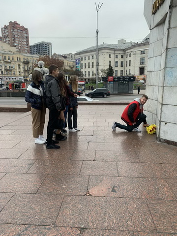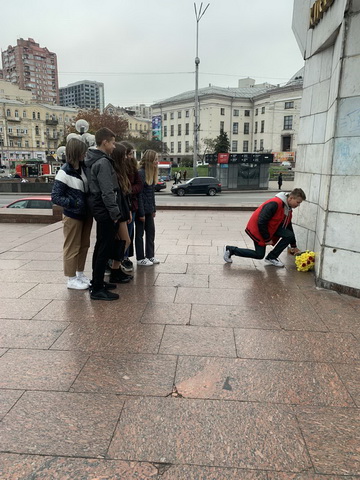під час проведення уроку-пам’яті гімназисти 9-А класу на чолі з класним керівником Таланюк В.В. здійснили покладання квітів до Обеліску
