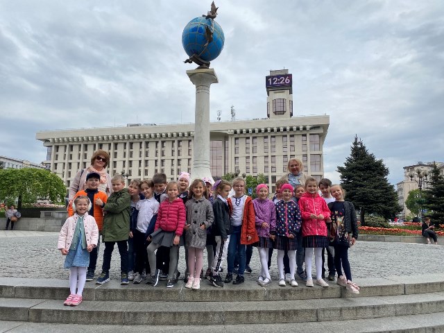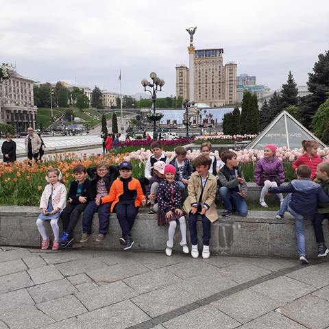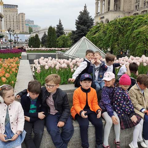 До Дня народження гімназії 14 травня 2021 року учні 1-А класу, класовод Палійчук Л.М., познайомилися з історією школи та здійснили пішохідну екскурсію вулицями Б. Грінченка, Хрещатиком, Прорізною, відвідали Майдан Незалежності, де ознайомилися з їх історією, архітектурою, пам'ятниками.
