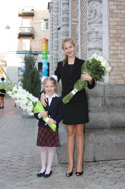 З повагою випускниця 2017 року Кучеренко Вікторія та продовжувач традицій навчання учениця 9-Б класу Кучеренко Софія.