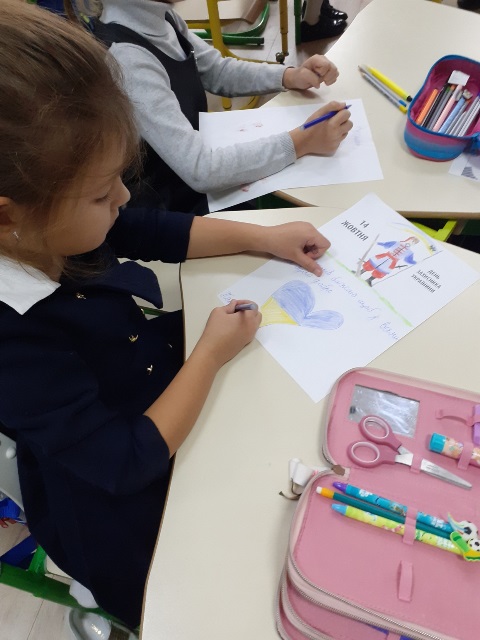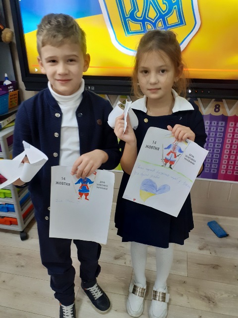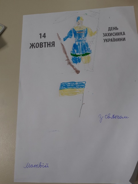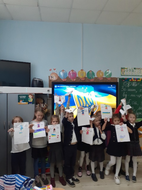 13 жовтня 2021 року учні 2-х класів на чолі з класоводами Палійчук Л.М. та Хмарою І.Г. виготовили власноруч листівки-привітання для учасників АТО й подарували їх - вчителю музики Данилу Мельнику, а також нашим татусям - Полієнко Злати та Маринюка Андрія.