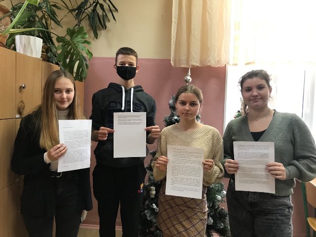 22 грудня 2021 року соціальний педагог Лашкова Г.С. відправила листи гімназистів 9-10-х класів, які виступили на захист прав людей із різних країн та висловили письмову солідарність героям та героїням правозахисної кампанії – «Марафон написання листів – 2021», до представництва Amnesty International.