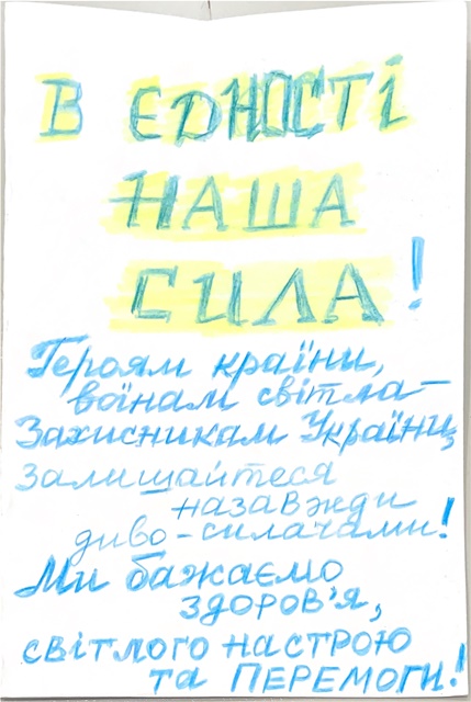 Гімназисти 8-10 класів підготували листівки, малюнки-обереги для захисників Збройних Сил України.