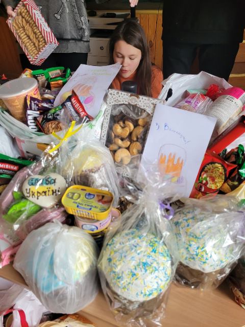 13-14 квітня 2023 року вся гімназійна родина долучилася до збору продуктів "Великодній кошик для воїна" для вояків 241 батальйону 251 бригади. Були зібрані : листи, малюнки, пасочки, солодощі (енергетичні батончики, шоколад, шоколадні батончики, горіхи, тушонка, швидкорозчинна їжа). Дякуємо усім!!!