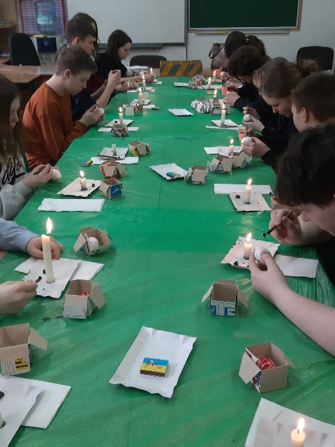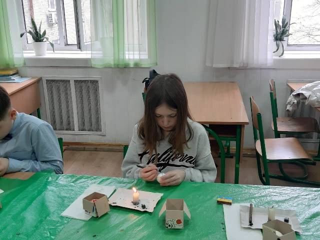 учні 7-А класу гімназії №48 прийняли участь в майстер-класі з розпису писанки до Великодніх свят. Ознайомилися з історією писанкарства та значенням символів- оберегів.