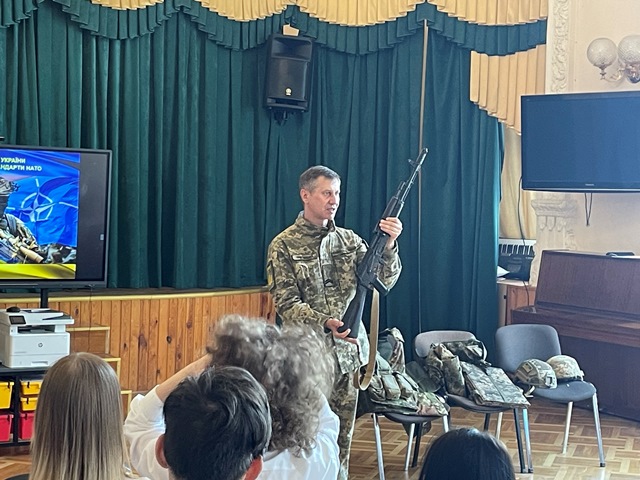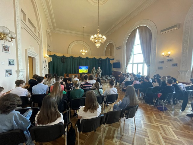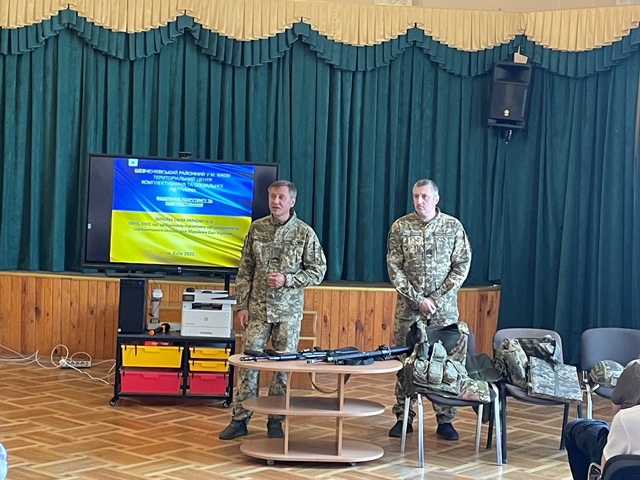 25 травня 2023 року інструкторами відділення рекрутингу та комплектування Шевченківського районного у місті Києві територіального центру комплектування та соціальної підтримки були проведені відкриті профорієнтаційні уроки «Захисту України» для учнів 9-10 класів гімназії №48.