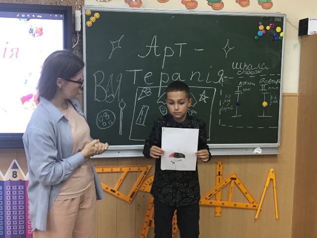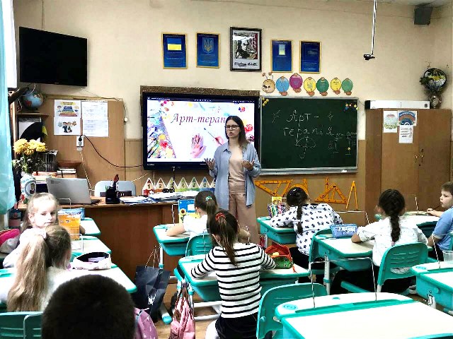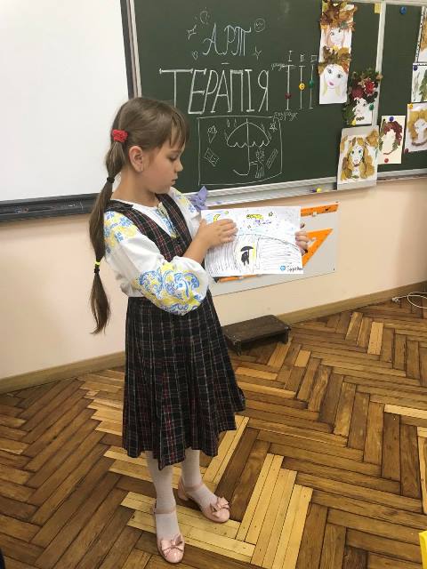 21 вересня 2023 року в гімназії№48 соціальний педагог Лашкова Г.С. провела інтерактивні заняття з елементами арт-терапії та музикотерапії для учнів 3-х класів. Під час уроків було проведено арт-терапевтичну вправу «Парасолька» для стабілізації психоемоційного стану дітей та зниження тривожності.