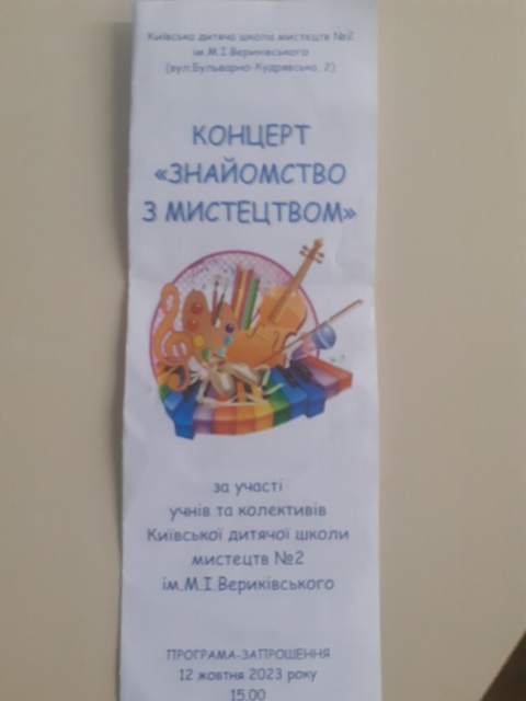 12 жовтня 2023 року учні 3-4 класів гімназії №48 мали можливість відвідати концерт «Краса осені» на базі Київської дитячої школи мистецтв №2 ім. М.І. Вериківського в рамках спільної співпраці та з метою естетичного виховання учнів. Надихнулись чудовим концертом! Побачили виступ спільних талантів.
