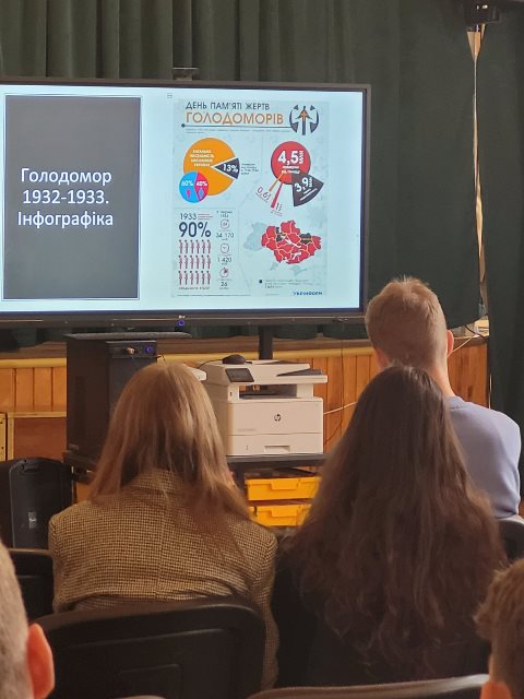 До Дня пам’яті жертв Голодоморів 1932-1933 років в Україні 23 листопада 2023 року істориком-аналітиком – Грицутою Г.О. був проведений семінар-лекція «Травми Голодомору 1932-1933 років в Україні» для учнів 9-11-х класів гімназії №48.Вразила інфографіка Голодоморів в Україні та шляхи розвитку України сьогодні.