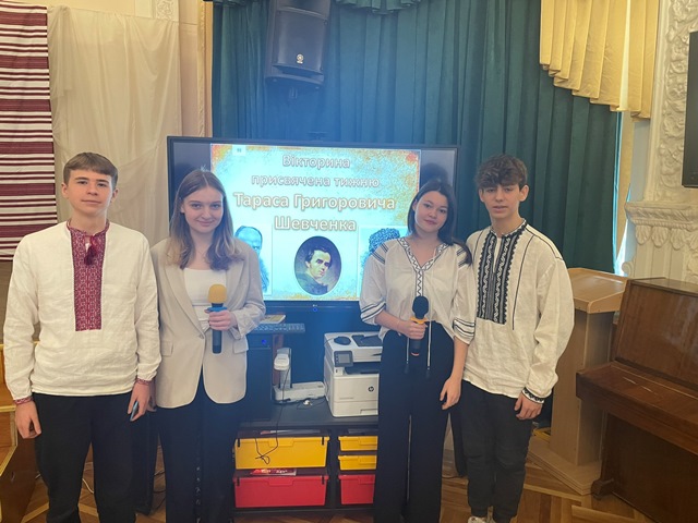 До 210 річниці з дня народження Тараса Шевченка, у рамках відзначення Шевченківського тижня в гімназії №48 06 березня 2024 року для учнів 8-х та 9-х класів було проведено вікторину «Наш Шевченко. Шевченко-поет. Шевченко-художник. Шевченко-пророк» та інтелектуальну гру «Що? Де? Коли?» Переможцями стали команди 8–А та 9-Б класів! Вітаємо!