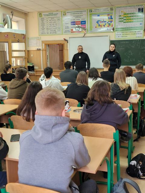 15 березня 2024 року в гімназії №48 начальником сектору ювенальної превенції Шевченківського управління поліції – Сіраком Сергієм Вікторовичем та інспектором сектору ювенальної превенції Шевченківського управління поліції – Терещенко Веронікою Олександрівною для 7-10 класів були проведені тематичні уроки-лекції «Наркотичні засоби, вживання, розповсюдження та наслідки». Відбувся активний діалог, під час якого діти мали можливість з’ясувати причини та наслідки правопорушень серед підлітків та їх попередження, протидії булінгу в дитячому середовищі, особливості відповідальності підлітків за порушення закону.