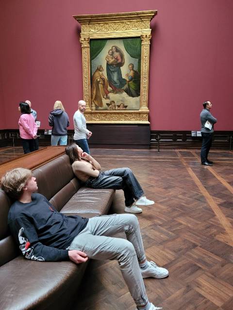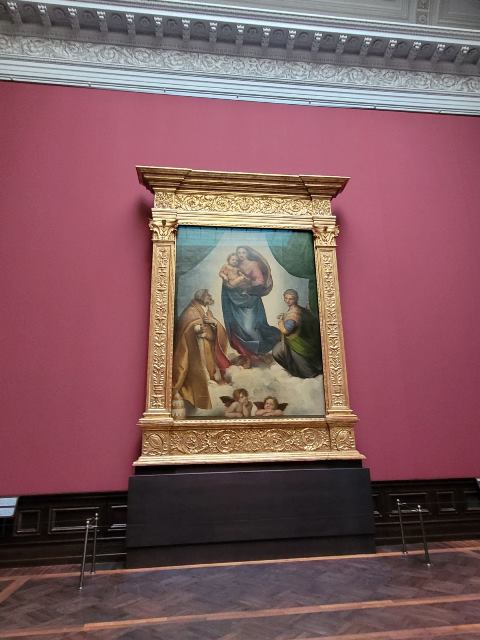 Європи», найвища церква у Німеччині – Фрауенкірхе, Двір мистецтв, Палац Цвінгер, в якому розміщена Дрезденська картинна галерея, в якій зберігається одна із найбільших унікальних колекцій картин у світі, музей порцеляни, збройова палата й музей фізики і математики. Однією з найбільших скарбів є шедевр Рафаеля Санті «Сікстинська Мадонна».