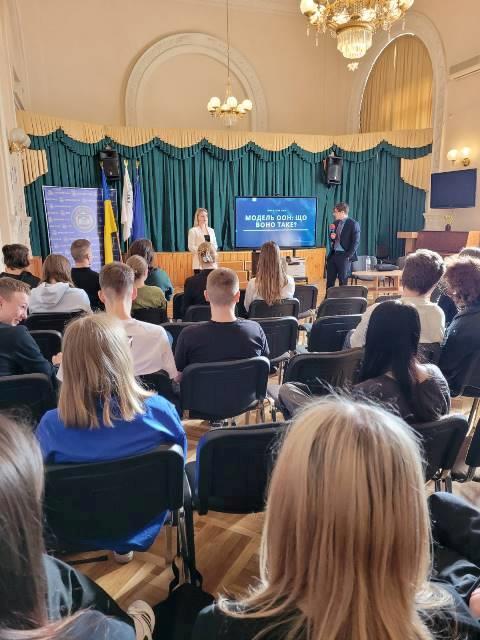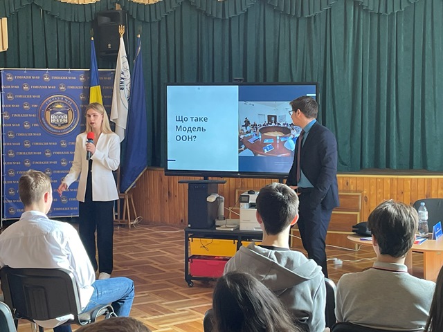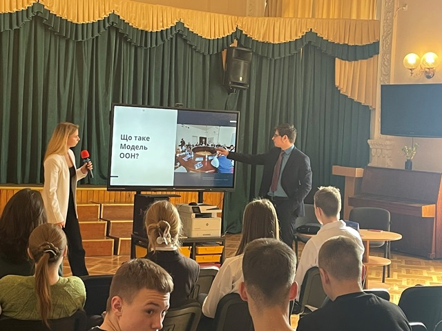 05 квітня 2024 року студенти Києво-Могилянської академії провели ознайомчу лекцію "Що таке Модель ООН" для учнів 8-10 класів гімназії №48. Учні дізналися про особливості проведення науково-практичних конференцій у форматі моделей ООН. Гімназистів запросили до участі у грі на базі Києво-Могилянської академії, яка відбудеться 20-21 квітня 2024 року.