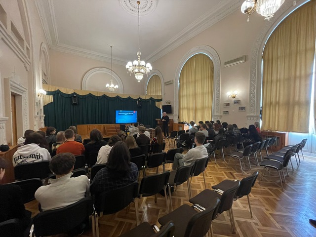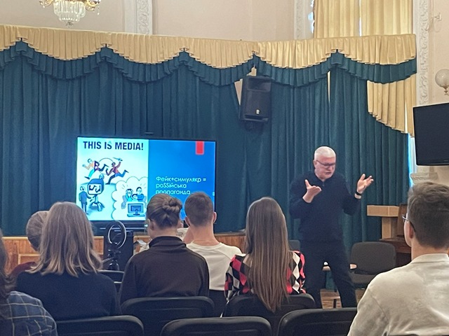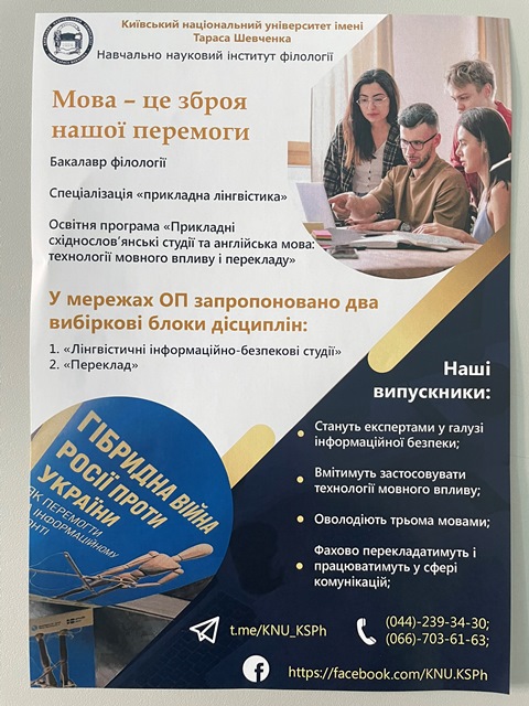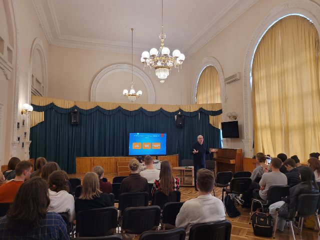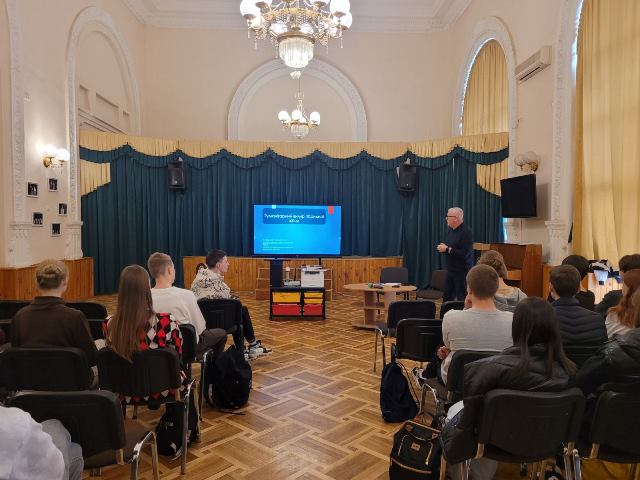 22 квітня 2024 року для учнів 10-х класів гімназії №48 була проведена профорієнтаційна зустріч з Бондаренком Олександром Олександровичем -Кандидатом філологічних наук, доцентом, завідувачем кафедри східнослов’янської філології та інформаційно-прикладних студій Навчально наукового інституту філології Київського національного університету імені Тараса Шевченка. Учнів ознайомили зі спеціальністю «Прикладна лінгвістика», «Лінгвістичні інфорамаційно-безпекові студії», «Переклад» та особливостями навчання в Навчально науковому інституті філології КНУ ім. Т.Г. Шевченка.