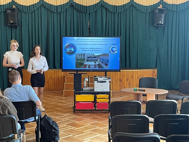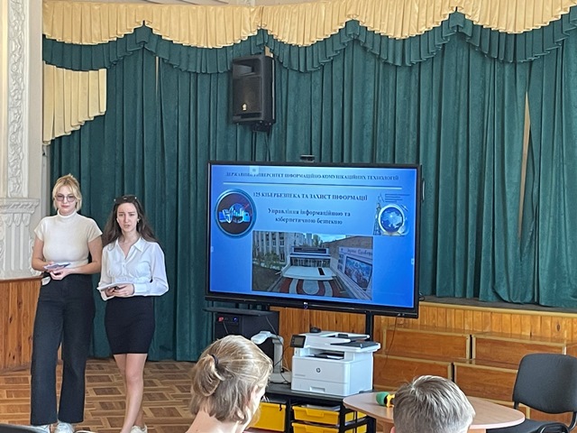 30 квітня 2024 року студентами 5-курсу Державного університету інформаційно-комунікаційних технологій за спеціальністю «125- кібербезпека», спеціалізації «Управління інформаційною та кібернетичною безпекою» для учнів 10-х класів гімназії №48 була проведена профорієнтаційна зустріч, де гімназисти мали змогу ознайомитися з формами здобуття освіти та особливостями вступу до Державного університету інформаційно-комунікаційних технологій.