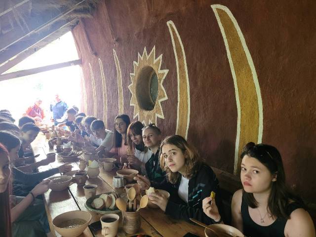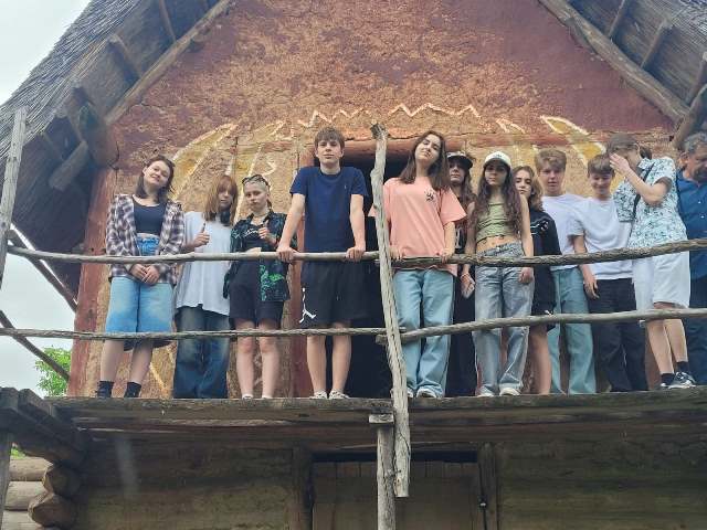 Цікавою, трішки загадковою, але дійсно незабутньою стала подорож до Музею Трипільської культури в селі Легедзиному, що належить до складу Державного історико-культурного заповідника “Трипільська культура”, розташованого одразу у трьох районах Черкащини – Тальнівському, Уманському та Звенигодському, яку здійснили учні 5-Б, 8-Б, 9-Б класів гімназії №48 разом зі своїми класними керівниками Катихіною М.О., Червінською Н.М. та Чистяк О.І. Нам дуже пощастило, бо гідом по Музею був відомий кінорежисер, історик, директор Державного історико-культурного заповідника, людина енциклопедичних знань Владислав Чабанюк. Він подарував нам не просто екскурсію, а цілий урок історії з містичними нотками. Шість тисяч років тому на місці села Легедзине і поруч з ним знаходились великі трипільські поселення. Серед них “Тальянки”– найбільше поселення світу мідної доби. Поселення налічувало майже 3 тисячі будинків, у яких проживало приблизно 15 тисяч людей. Артефакти музею збиралися багато років з величезних територій. Найнаочніша родзинка музею – відтворена дворівнева хата трипільців. Неймовірно пізнавальний музей, який надихає на вивчення історії рідної України.