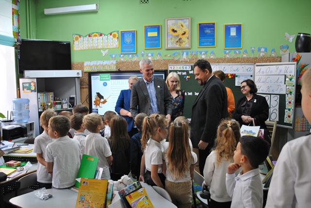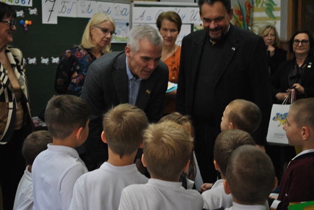 Фінляндія продовжує підтримувати реформу НУШ, тож під час екскурсії гості познайомилися з методами роботи вчителів гімназії, поспілкувалися з учнями, які підготували маленькі подарунки, виготовлені власноруч. Старші гімназисти мали слушну можливість вільного спілкування з паном Андресом.