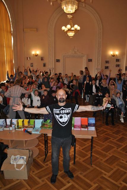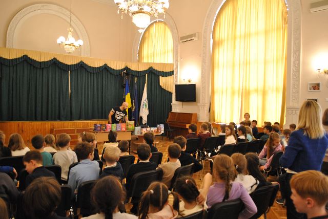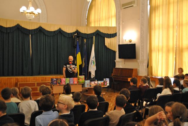 Він розповів діткам про свою діяльність, прочитав уривки зі своїх оповіданнь.Учні жваво задавали питання письменнику та мали можливість придбати книжечку з автографом автора.