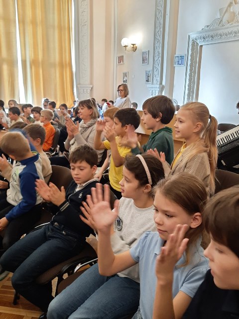В рамках гімназійного проєкту «Однодумці: учні, батьки, вчителі» 24 жовтня 2024 року учні 2-4 класів гімназії №48 разом із класними керівниками були гостинно запрошені відвідати концерт "Інструментальний калейдоскоп", який відбувся у актовій залі гімназії.