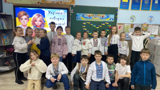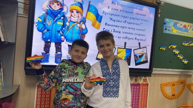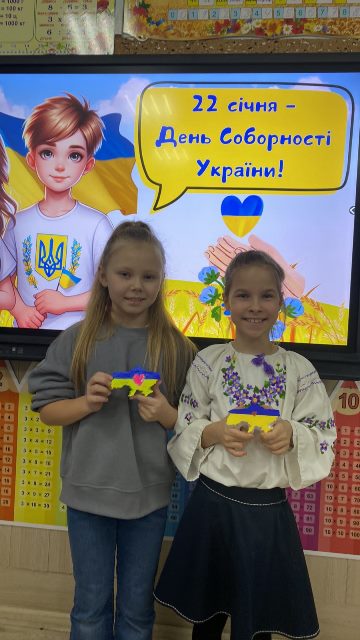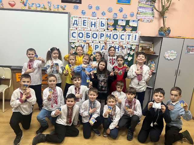 22 січня 2025 року учні 1-2 класів молодшої школи гімназії №48 активно відзначили День Соборності та Свободи України під гаслом "В єдності - сила". Створили Ланцюжок Єдності. Учні 3 -Б класу виконали цікаву композицію з власноруч створених памʼятних магнітів. Діти з радістю здійснили творчу роботу, дізнававшись багато цікавого про 22 січня в історії нашої країни.