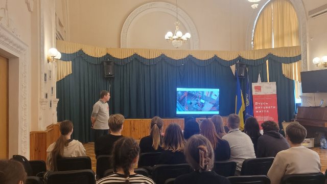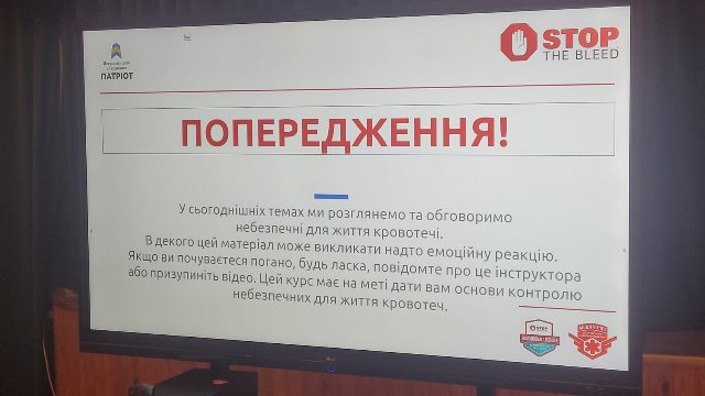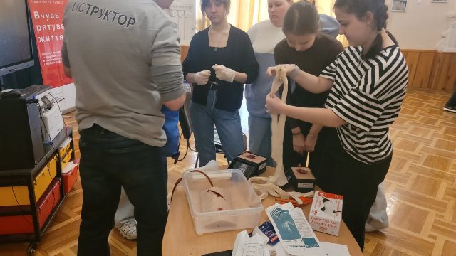 27 лютого 2025 року для учнів 10-11-х класів та вчителів гімназії №48 інструкторами ГО «Всеукраїнське об’єднання «ПАТРІОТ»: Кулебою Владиславом та Савельєвою Іриною в рамках проєкту «Вчусь рятувати життя» було проведено курс з надання домедичної допомоги та зупинки кровотеч Stop The Bleed.