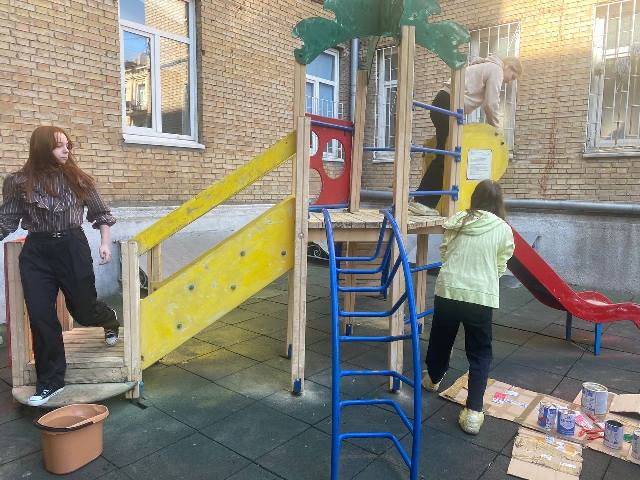 Нашим першим кроком стало оновлення дитячого майданчика. Тепер він виграє яскравими кольорами та чекає на малечу. Разом ми зробили важливу справу для нашого спільного простору: оновили розмітку на сходах — тепер вони виглядають охайно, зачистили частину графіті та зафарбували стіну, повернувши їй привабливий вигляд, розчистили дерева від зламаних гілок, подбавши про порядок і безпеку на спортивному майданчику