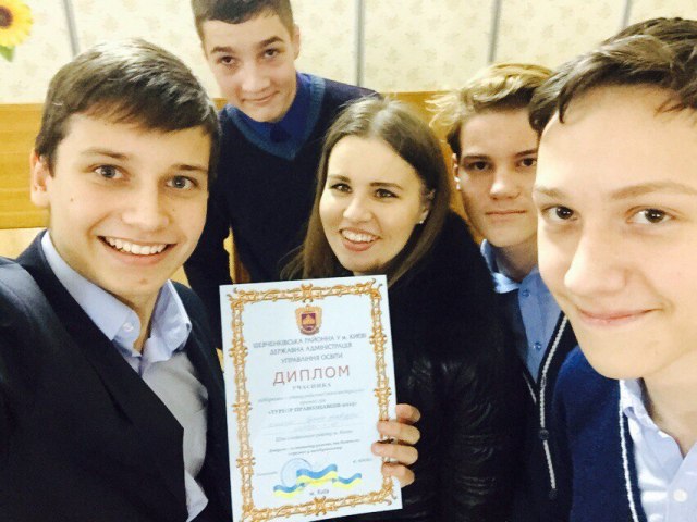 08 грудня 2015 року збірна команда «Вуста правосуддя» у складі учнів 9-А класу (Маслакова Леоніда, Власова Владислава, Шадурського Олександра та Руденка Нікіти) брала участь у районній інтелектуально-правовій грі «Турнір правознавців - 2015» Шевченківського району. Команда посіла ІІ місце у відбірковому етапі. На жаль, цього було недостатньо, щоб потрапити до фіналу, але гравці показали чудові результати та продемонстрували хороші знання з правознавства.
