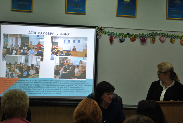 19 грудня 2016 року в гімназії№48 пройшла педагогічна рада гімназії за темою: «Соціально- активна діяльність класного керівника. Роль особистості класного керівника у формуванні комплексу навичок соціальної компетентності як базису життєдіяльності людини». Педагоги гімназії обговорювали концептуальні засади реформування середньої школи-Концепцію «Нова українська школа». Своїми унікальними «наробками», секретами майстерності поділились досвідчені колеги - класні керівники: Крамар І.Б, Саранчук Л.М., Зубенко О.О; практичні психологи Заневська Д.Ю. та Білоноженко М.С. продемонстрували загальні результати психологічного дослідження комунікативно-соціальної компетентності учнів 9-х класів та методичні поради для вчителів щодо індивідуальної роботи з учнями гімназії; педагог-організатор Давидов А.П. продемонстрував результати опитування «Діагностика лідерських здібностей» та рекомендації для подальшої роботи педагогам гімназії.