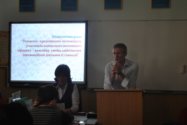 28 березня 2014 року в гімназії пройшло засідання педагогічної ради «Розвиток креативного потенціалу учасників навчально-виховного процесу - важлива умова здійснення інноваційної діяльності гімназії».