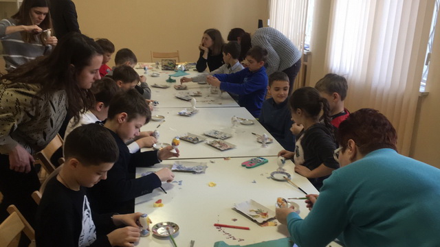 Учні 3-А класу готуються до зустрічі Великодня. Діти виготовили зайців у техніці «витинанки» й прикрасили яйце у техніці «декупаж».