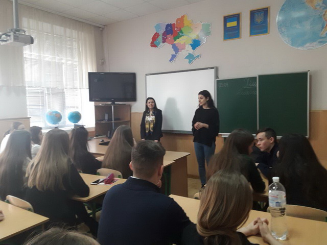 03 квітня 2018 року для гімназистів 10-х класів були проведені інтерактивні заняття профорієнтаційного спрямування за участю провідних фахівців у сфері менеджменту та ІT- рекрутінгу в рамках проекту «Школа героїв» - зустрічі з досвідченими професіоналами в форматі бесіди «запитання- відповідь». Гімназисти спілкувалися з Катериною Назаровою – employer brand manager та Ольгою Діденко – ІТ-рекрутером, які допомогли дізнатися багато цікавого про свої професії.