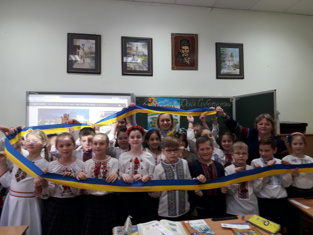 22 січня 2018 року для гімназистів 4-А класу було проведено інтерактивне заняття «Сяйво Злуки» до Дня Соборності України за участю співробітника бібліотеки ім. Є. Плужника Вавілової Валентини Олексіївни та завідуючої бібліотеки Чумак Тетяни Леонідівни.